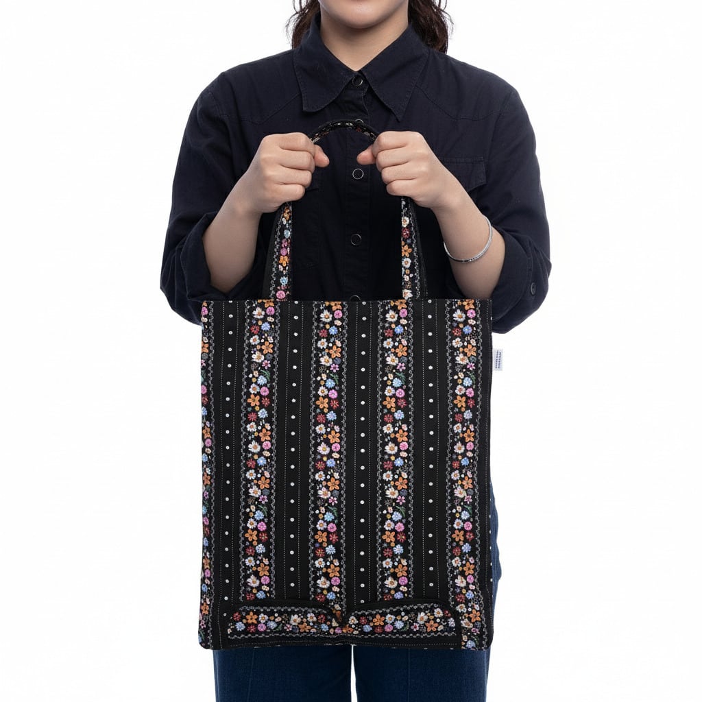 ナラヤ バッグ NaRaYa タイ おしゃれな折り畳み エコバッグ M コットン製 トートバッグ レジ袋 ・ボーホーフラワー NB-135B | ナラヤ ショップ &【公式サイト】備長炭本舗 BASE店