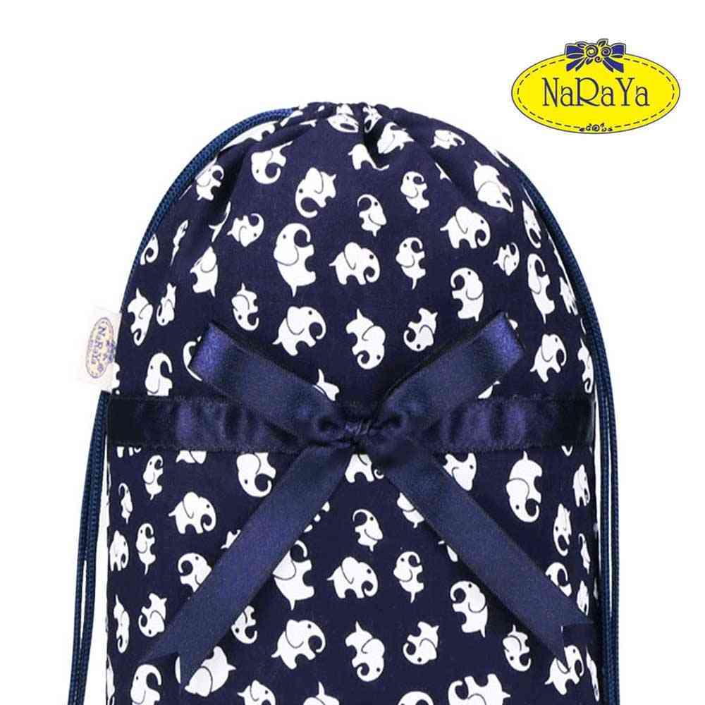 ナラヤ タイ リボンバッグ NaRaYa 巾着ポーチ 巾着袋 コスメポーチ M (化粧ポーチ ランジェリーポーチ)・ネイビーエレファント NB-258/2 | ナラヤ ショップ &【公式サイト】備長炭本舗 BASE店